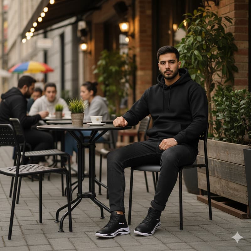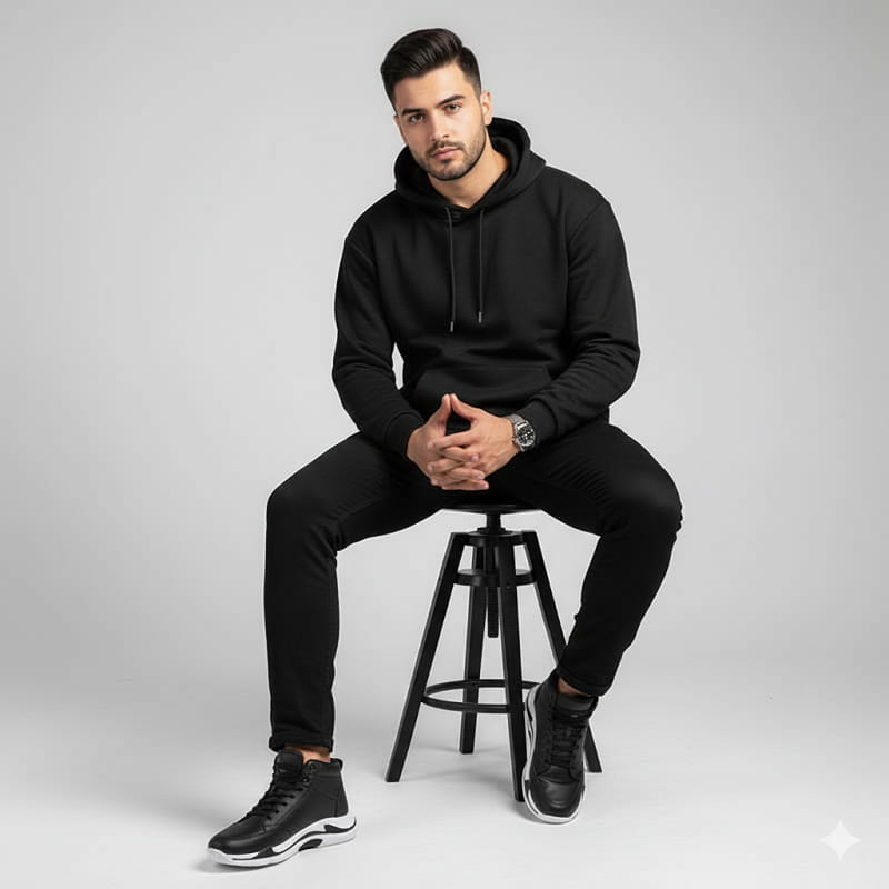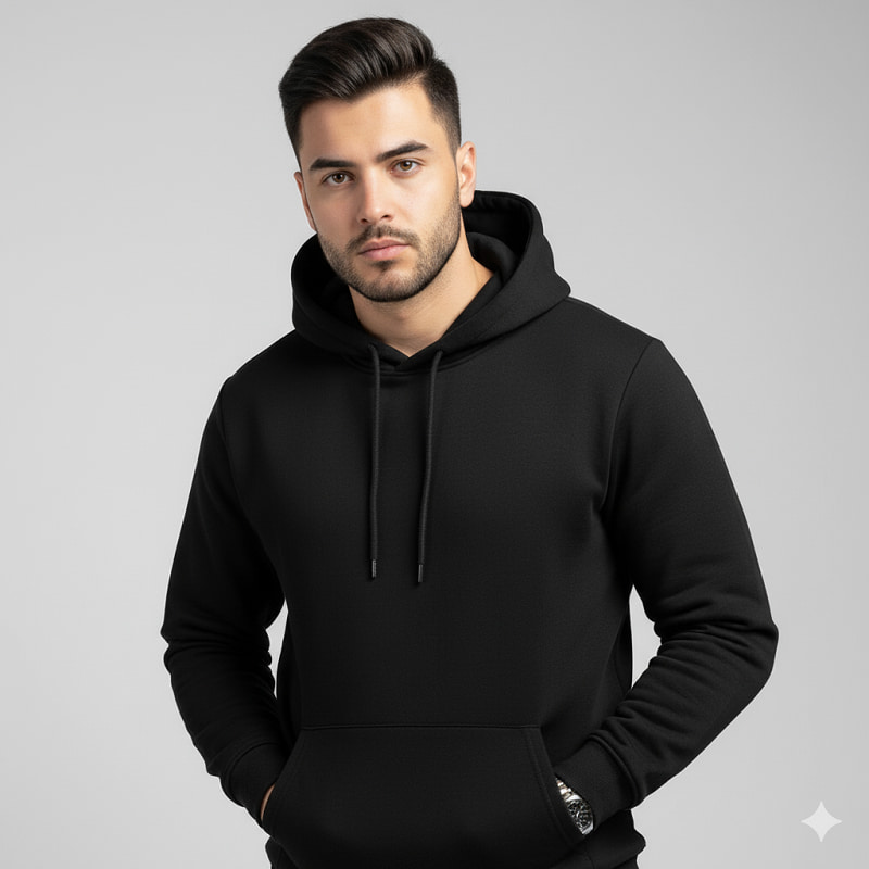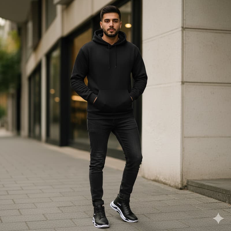 هودی کلاهدار مردانه بیسیک مشکی-مشکی